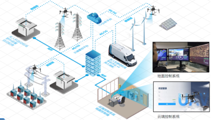 全自动化无人机巡检系统部署在作业区域内,在划定好指定航线后,自动无人机系统即可完成无人机自动起降、图像采集、更换电池等作业,让无人机实现电站“无人化”作业。