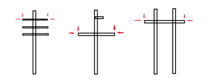 单杆双回杆塔、上字形杆塔(含上字形单杆、上字形轻型塔、上字形自立塔)及无地线横担的门形双杆控制点拍摄横担导线挂点两端,垂直点分别处于导线挂点金具垂直外侧,水平点分别处于横担水平面。